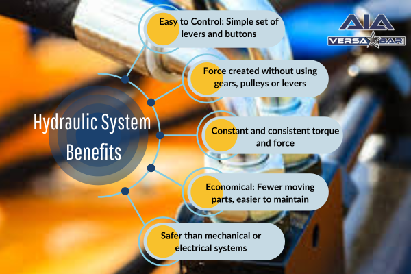 The hydraulic systems usually consist of a series of pistons. The more pistons you add to the system, the more force and complexity it delivers. These systems deal with heavier loads and perform more work.